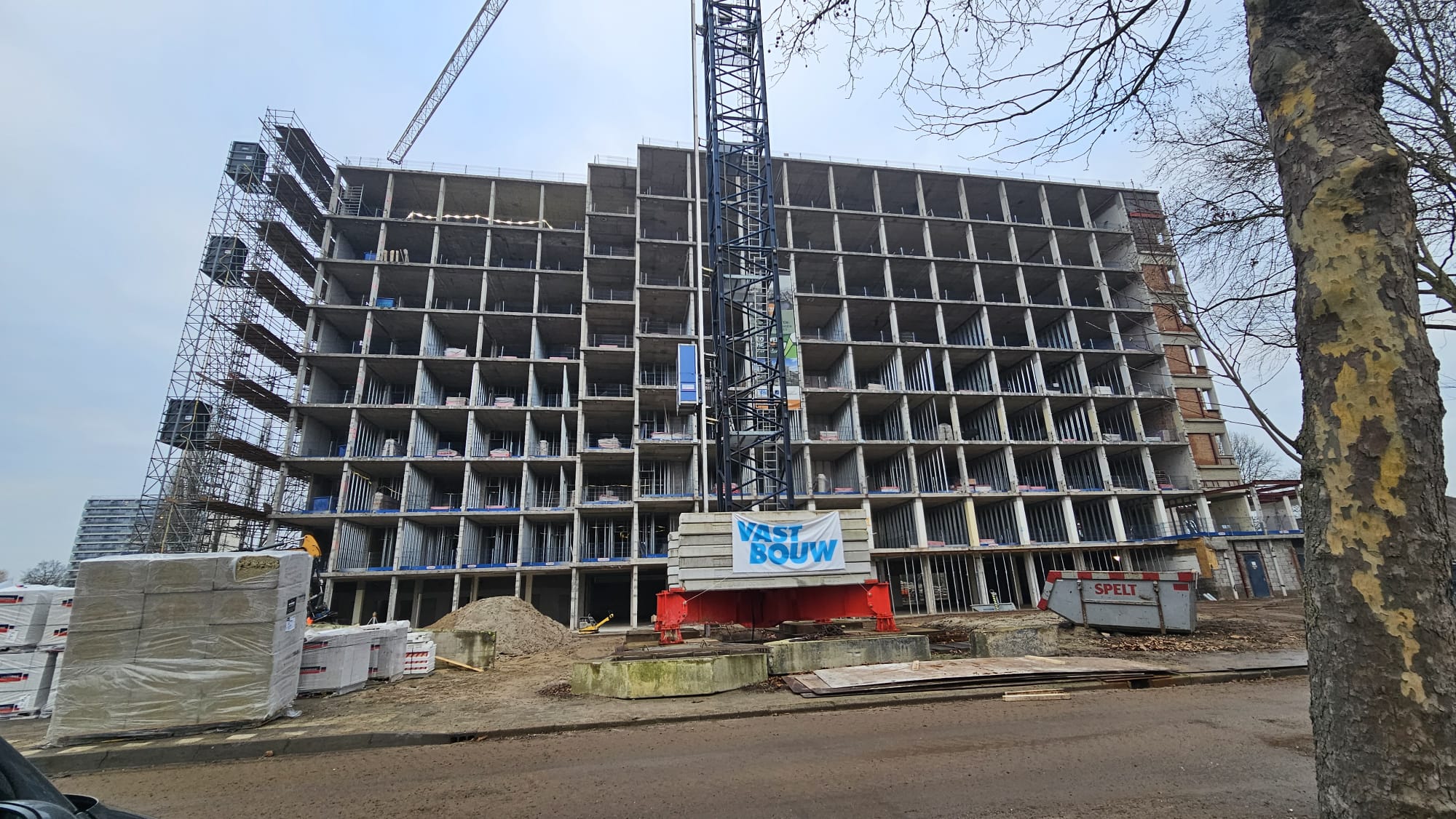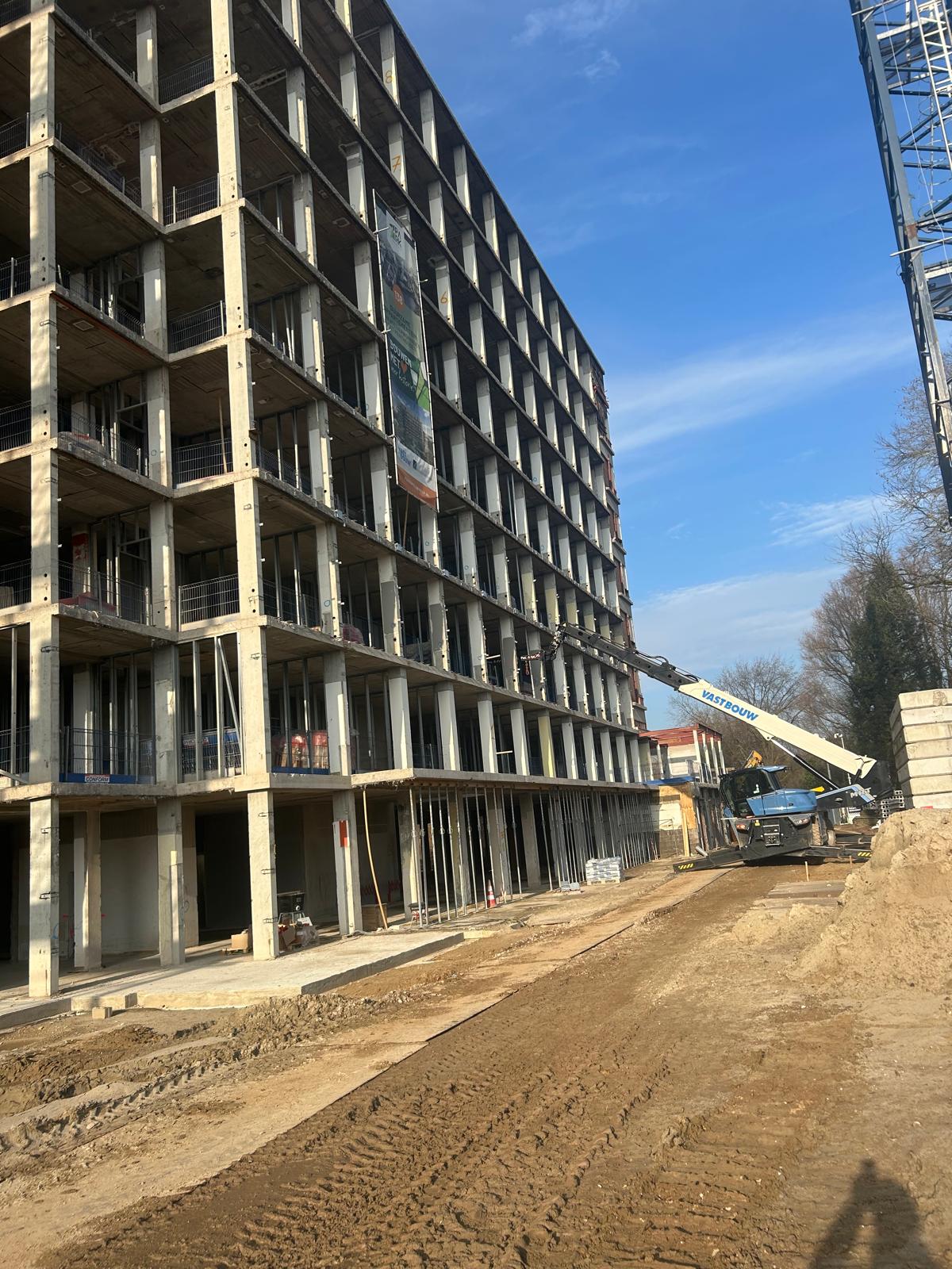 • Sparingen in de wanden zijn dichtgemetseld en sparingen in de vloer zijn met beton dicht gestort tot de 6e verdieping inmiddels.
