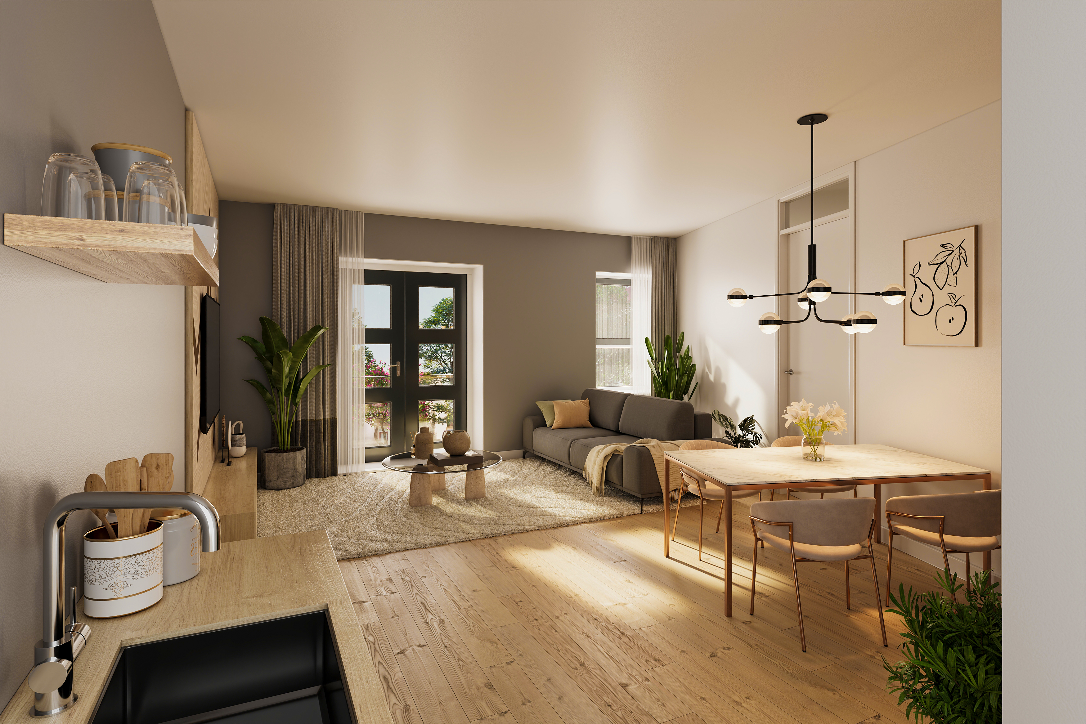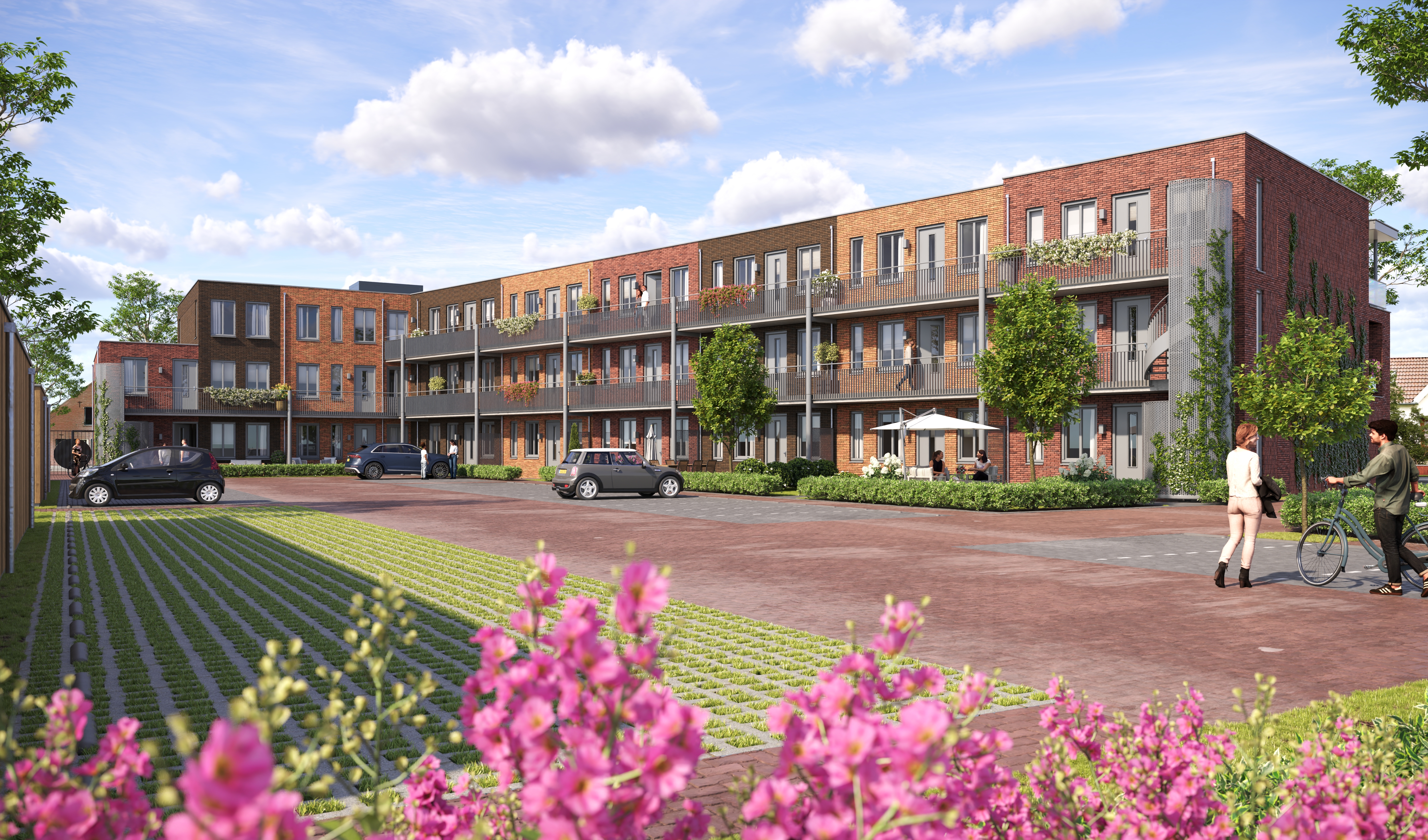 Ook op het gebied van duurzaamheid is het project toekomstgericht. Zo wordt onder het parkeerterrein een waterbufferingssysteem aangelegd om regenwater op te vangen en wordt aandacht besteed aan biodiversiteit, onder andere door voorzieningen voor vleermuizen te integreren. Aan de achterzijde van het gebouw komt een terrein met 38 parkeerplaatsen, bergingen en een gezamenlijke tuin die bijdraagt aan een prettige woonomgeving.